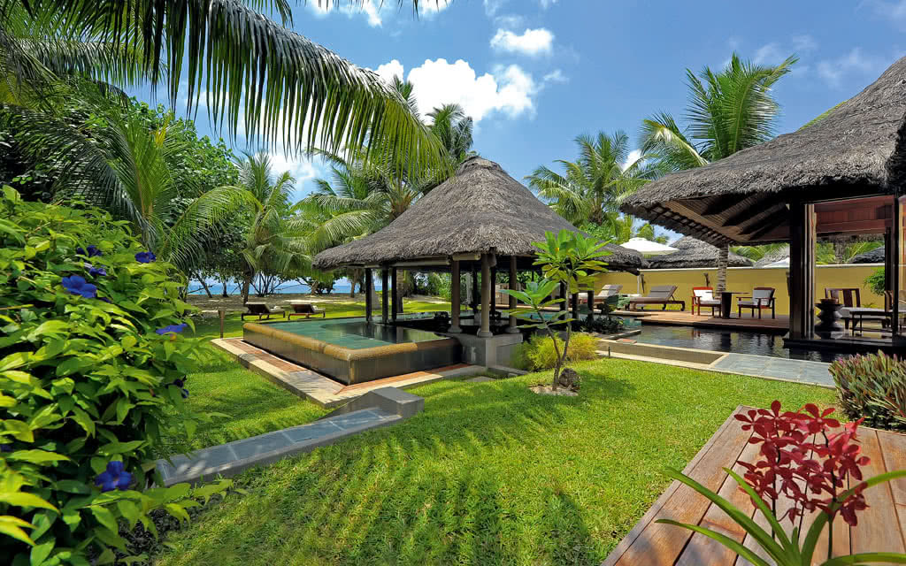 Les villas de 2 chambres à la pointe sud de l'Anse Kerlan offrent le meilleur hébergement de bord de plage de l'océan Indien. Les chambres mènent directement dans les jardins et sur la plage proche de quelques mètres et offrent une spacieuse salle de bain attenante, douche/bain à l'extérieur, salon et salle à manger avec télévision et console de jeux (gratuit sur demande), kitchenette pour le Maître de Villa et le personnel de service. Le salon mène directement à l'extérieur dans un espace salle à manger immergé dans la piscine privée et un pavillon personnel de relaxation et de massage.