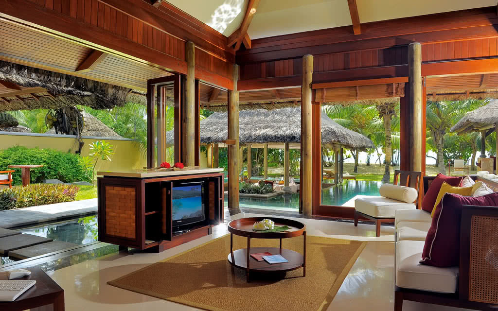 Les Junior Suites au toit de chaume ont été construites en bois, marbre, calcaire et granit rose. L'emphase est mise sur l'intimité et l'harmonie avec l'environnement naturel. Chaque Suite est conçue de façon minimaliste et cependant luxueuse avec de larges salles de bain et des terrasses ou balcons meublés avec un espace privé de salle à manger.