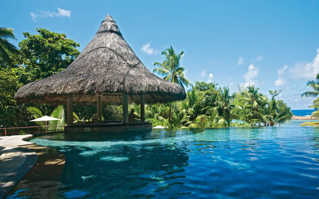 Situé sur Anse Kerlan à Praslin , le Constance Lemuria est l'un des fleurons de l'hôtellerie seychelloise. Posé entre le ciel et la mer, au coeur d'une palmeraie de 110 hectares, trois plages dont Anse Georgette, il se fond harmonieusement dans son environnement. Pierre brute, paille, bois flotté, granit rose les matériaux qui habillent les chambres sont naturellement raffinés, tandis que toutes les villas regardent vers l'océan côté ouest afin de profiter le plus longtemps possible des merveilleux couchers de soleil seychellois.